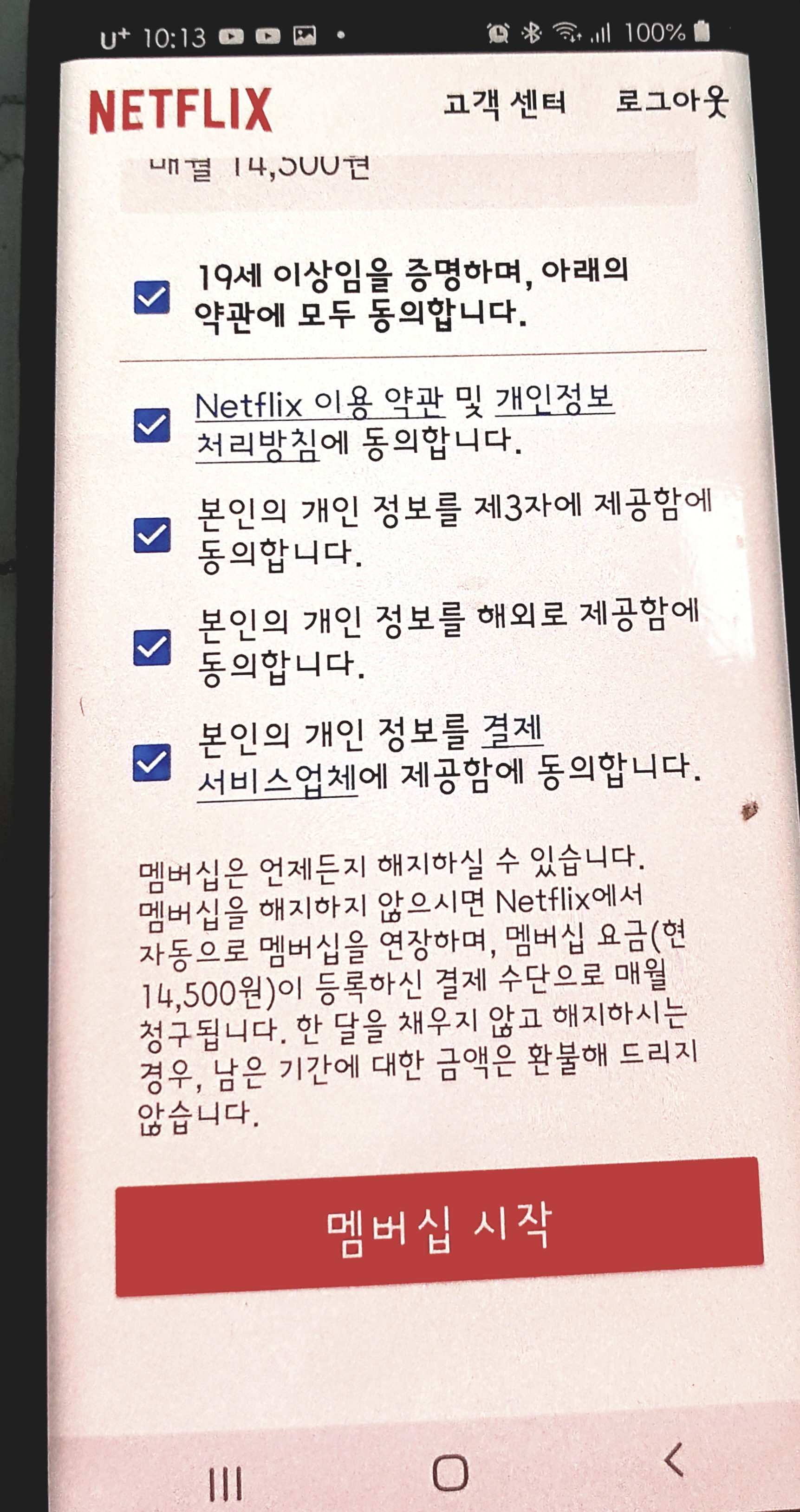 신용카드나 체크카드로 등록을 하고 멤버십 시작을 누릅니다