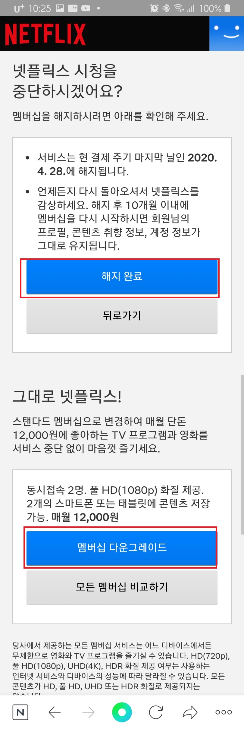 그럼 친구가 말한 한달무료랑 같은건데 왜 그런 팝업창이 없었던걸까요? 일단 시청을 해보고 맵버십 다운그레이드로 결정해서 시청을 할건지 아니면 처음에 결제했던 그대로 요금을 정할지 아니면 아예 해지를 할지 한달동안 사용해보도록 하겠습니다
