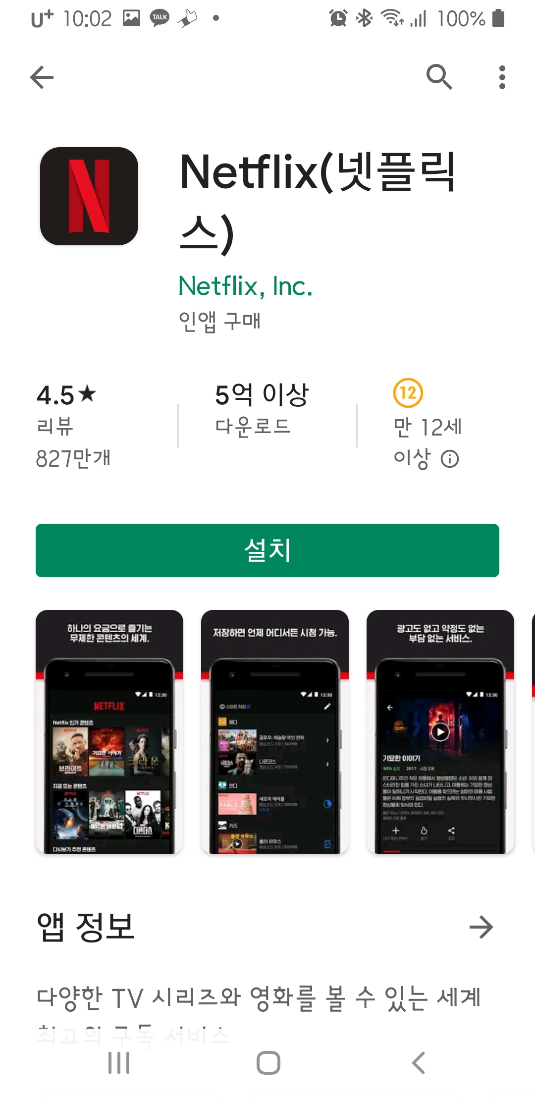 넷플릭스 어플을 열고 설치를 하였습니다