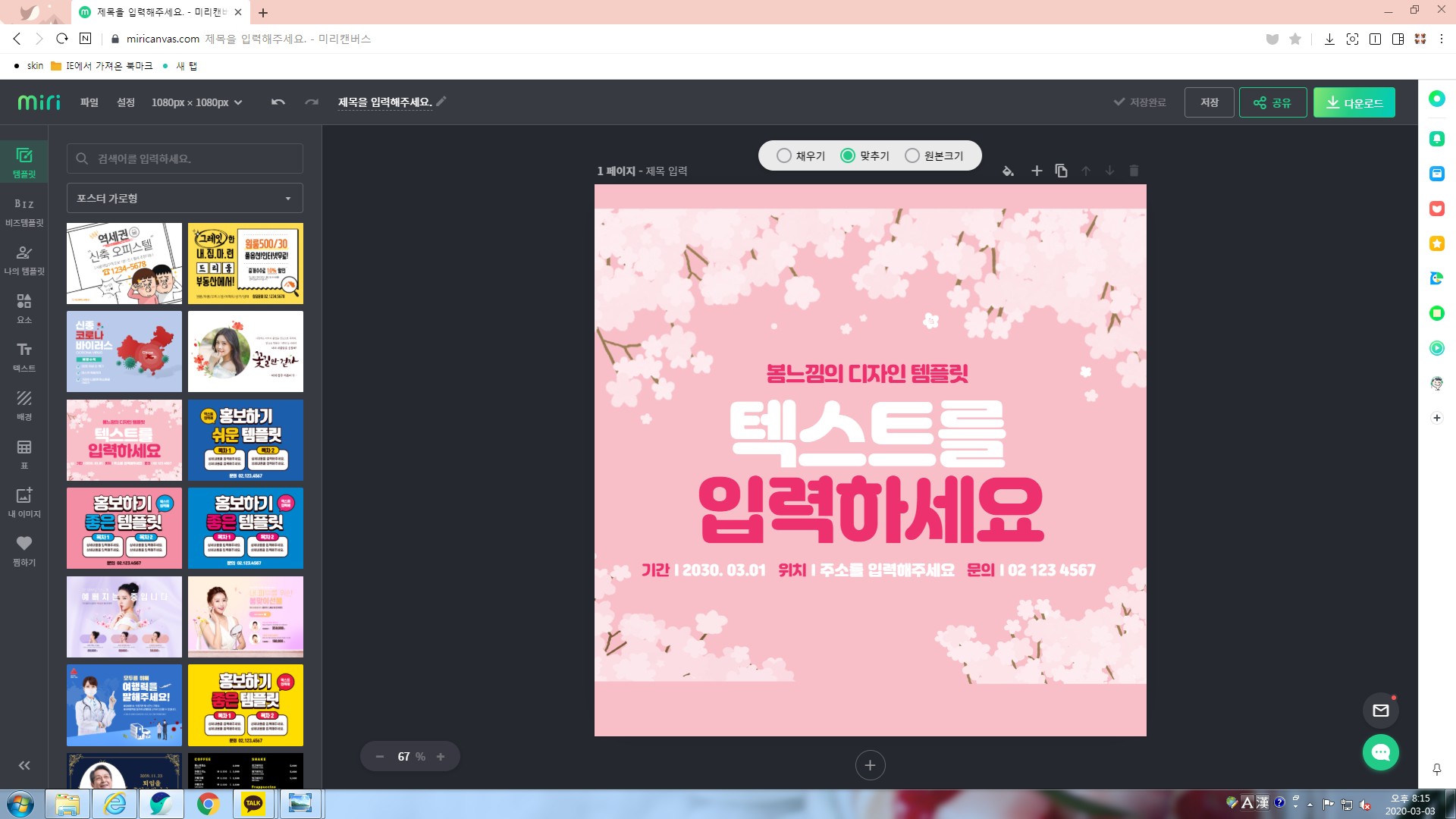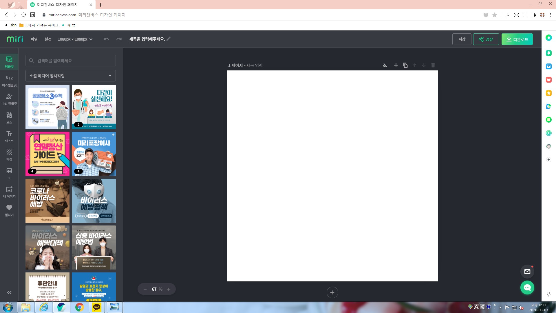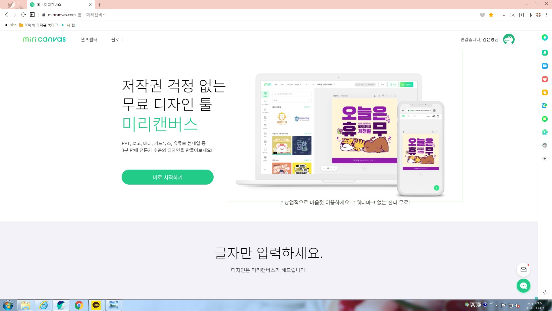 미리캔버스를 검색창에 치시면 이렇게 화면이 나옵니다 참고로 크롬에서 작업 하시길 권장드려요