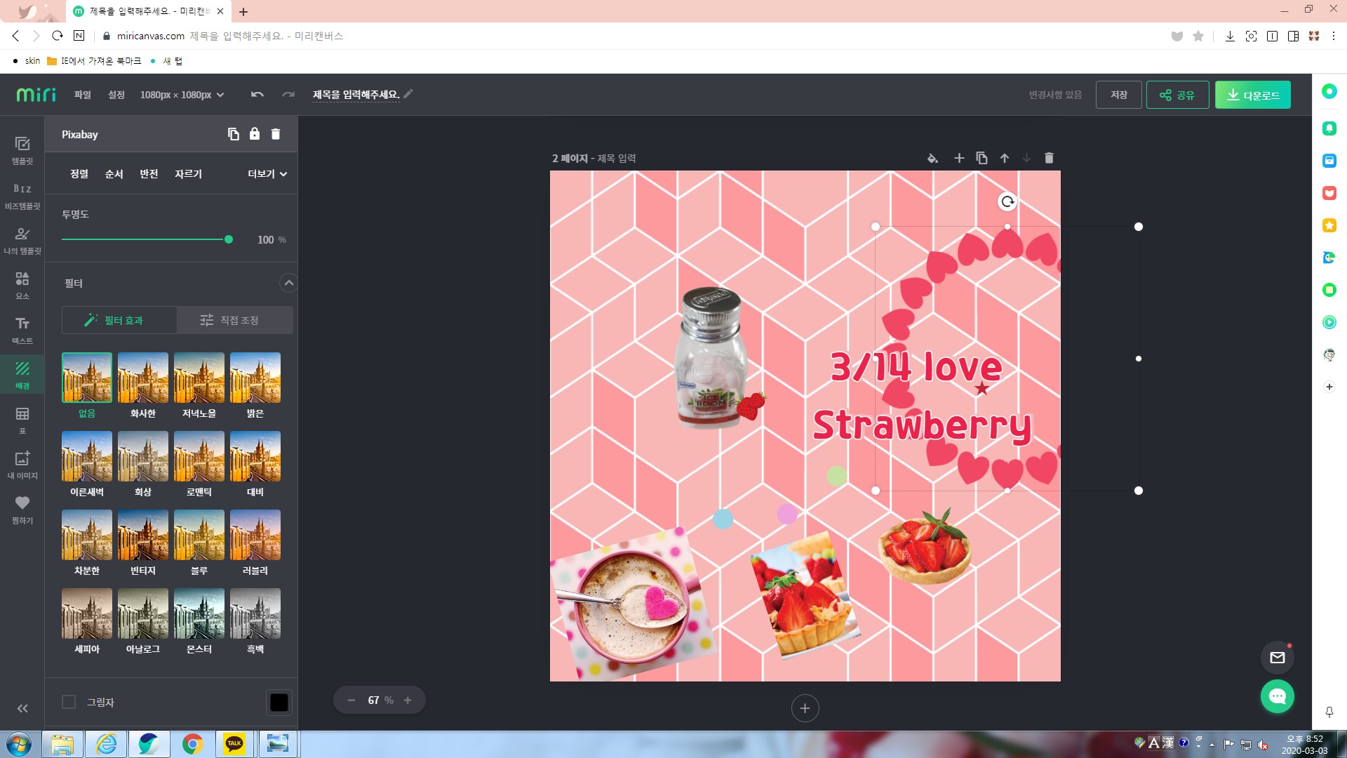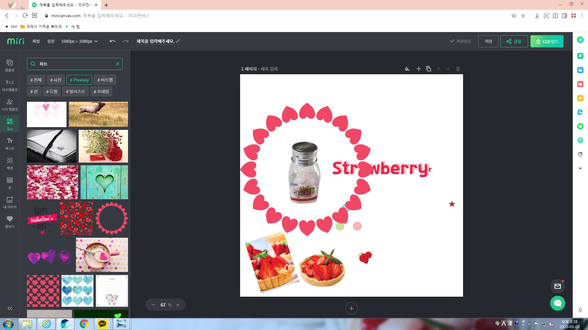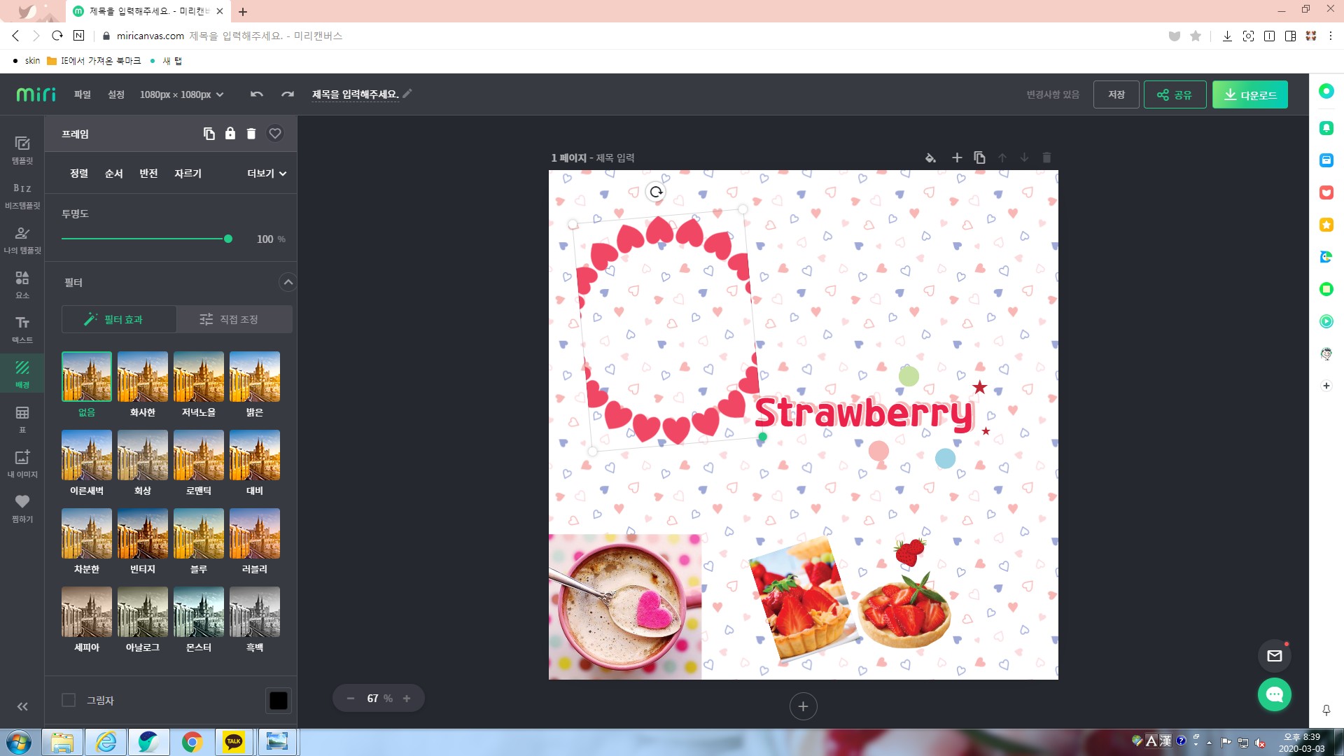 이렇게 하트크기도 조절해봤다가 큰테두리 하트를 잘못만져 강조할 이미지도 사라져버립니다