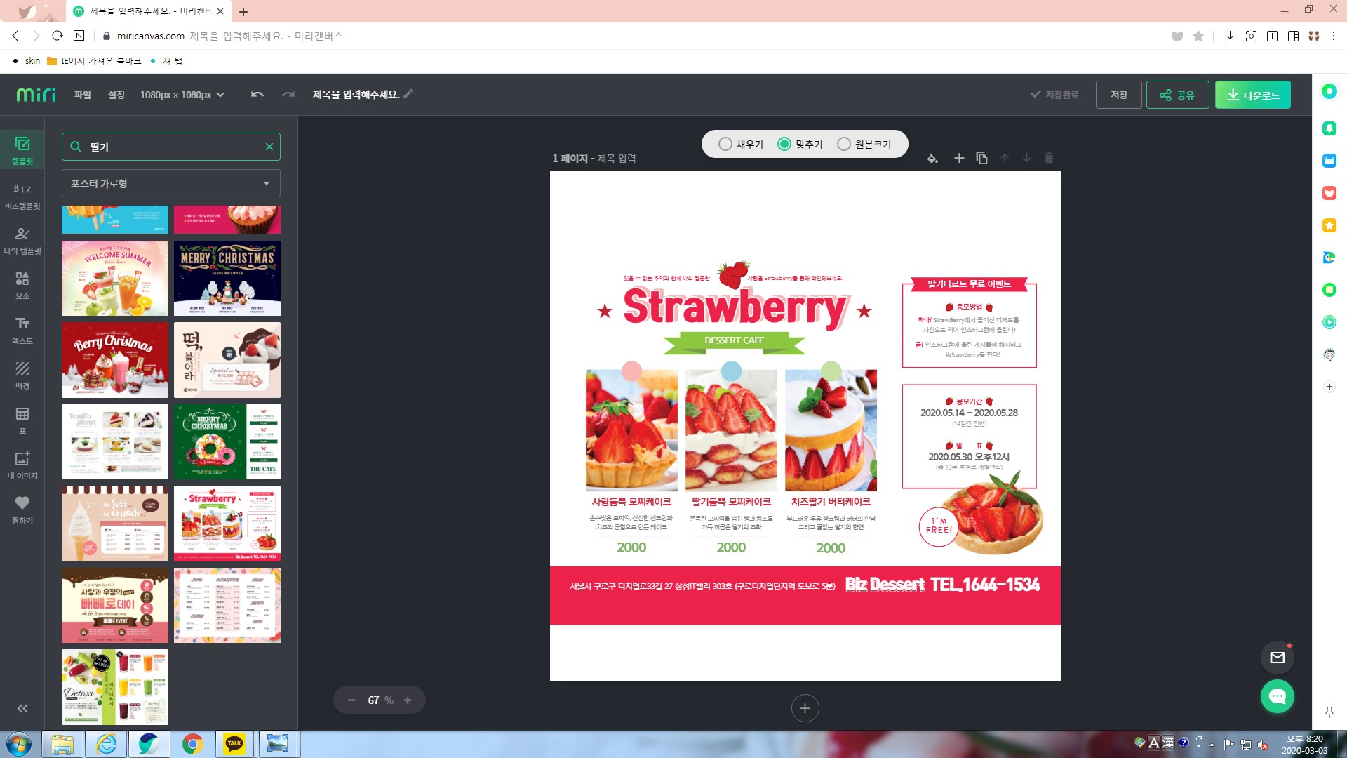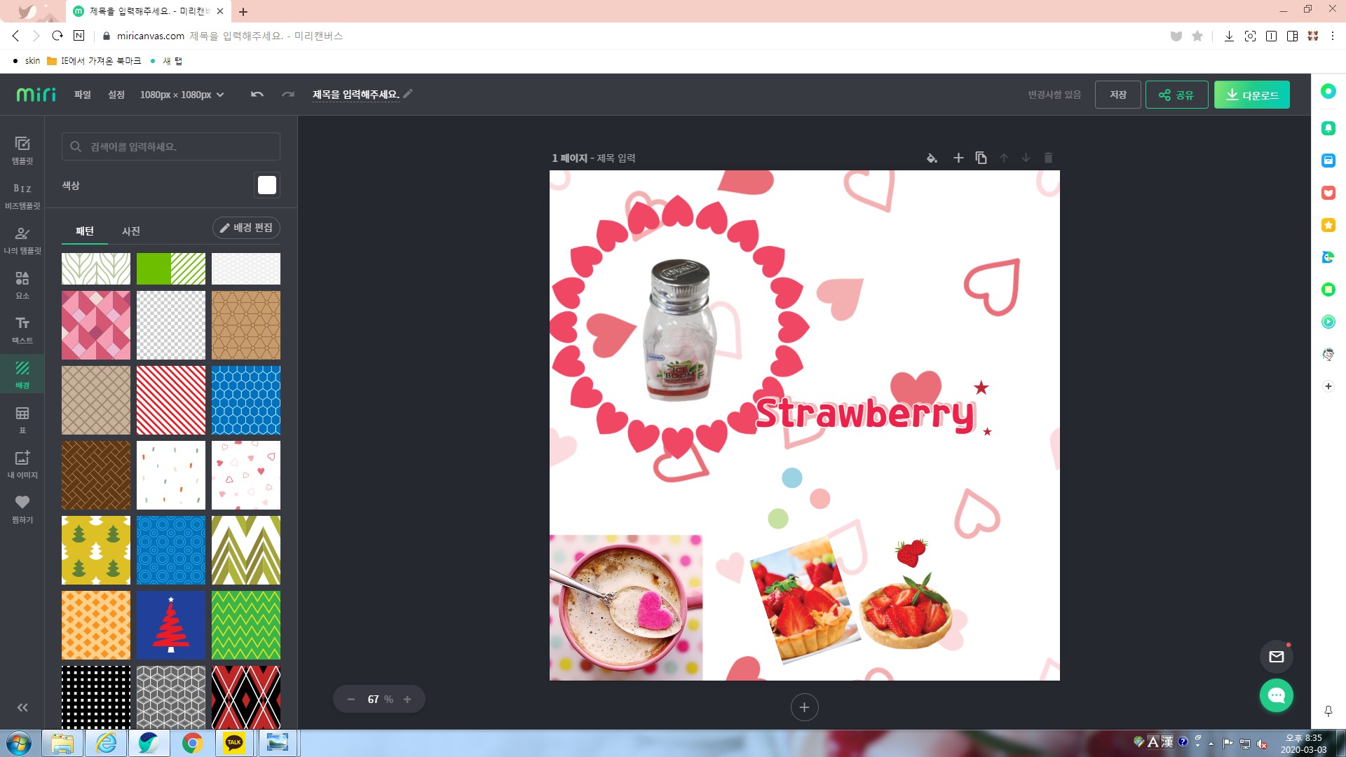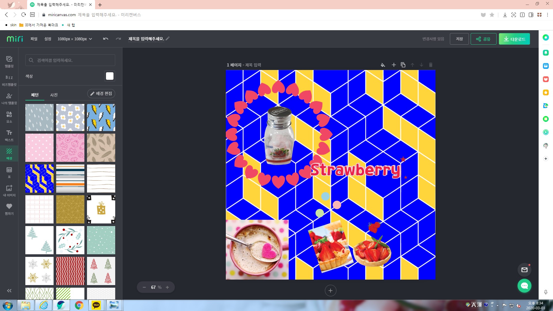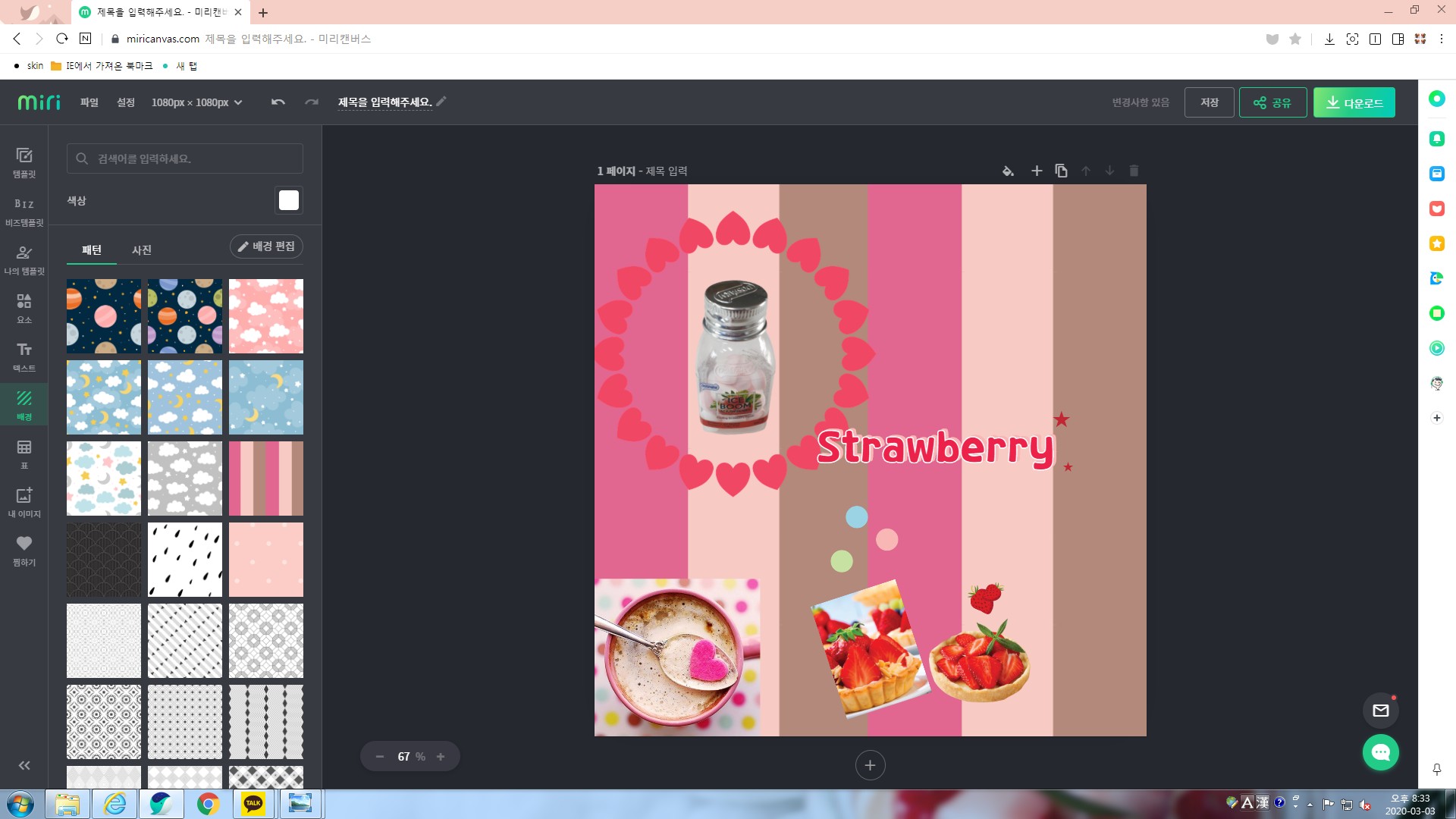 즉흥적으로 생각한 이미지 컨셉은 딸기맛이니까 검색창에 딸기를 검색해봅니다