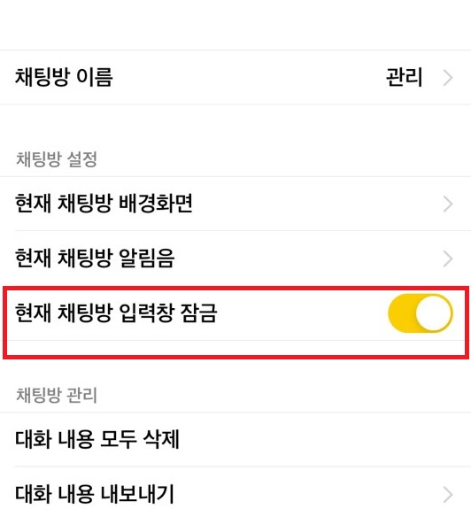 4.현재 채팅방 입력창 잠금을 눌러 색깔이 나오도록 활성화시킵니다
