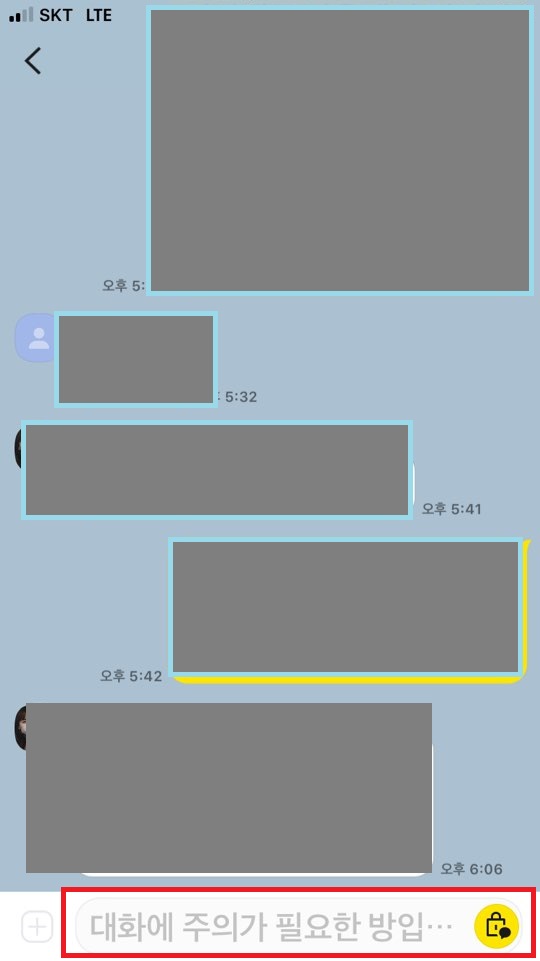 1. 카카오 채팅방에 대화를 조심해야 하는 방으로 입장합니다