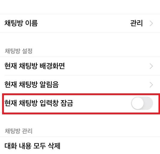4.현재 채팅방 입력창 잠금을 눌러 색깔이 나오도록 활성화시킵니다