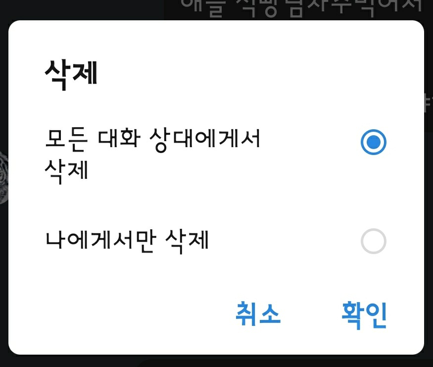 나에게서만 삭제 또는 모든 대화 상대에게서 삭제라는게 있어서 글을 삭제 하는 기능도 있지만 누군가 빛의 속도로 잘못보낸 내용을 봤다면 돌이킬수 없는 나만의 실수가 될수 밖에 없답니다