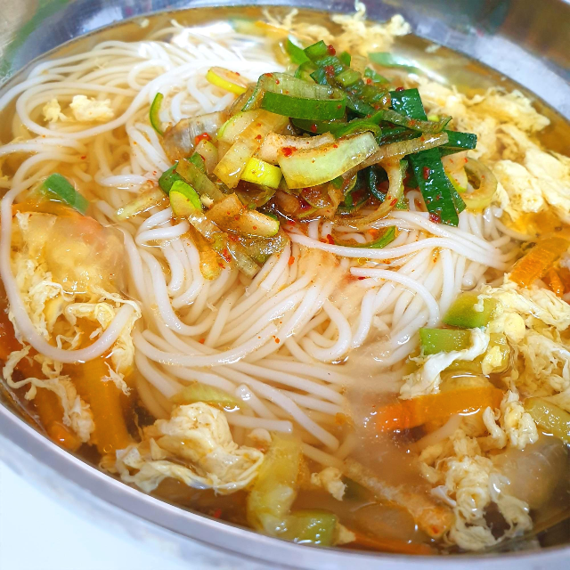 이때 국수면은 손빨래 하듯이 서로 비벼 빨아줘야 전분이 씻겨 나가 쫄깃하게 된답니다