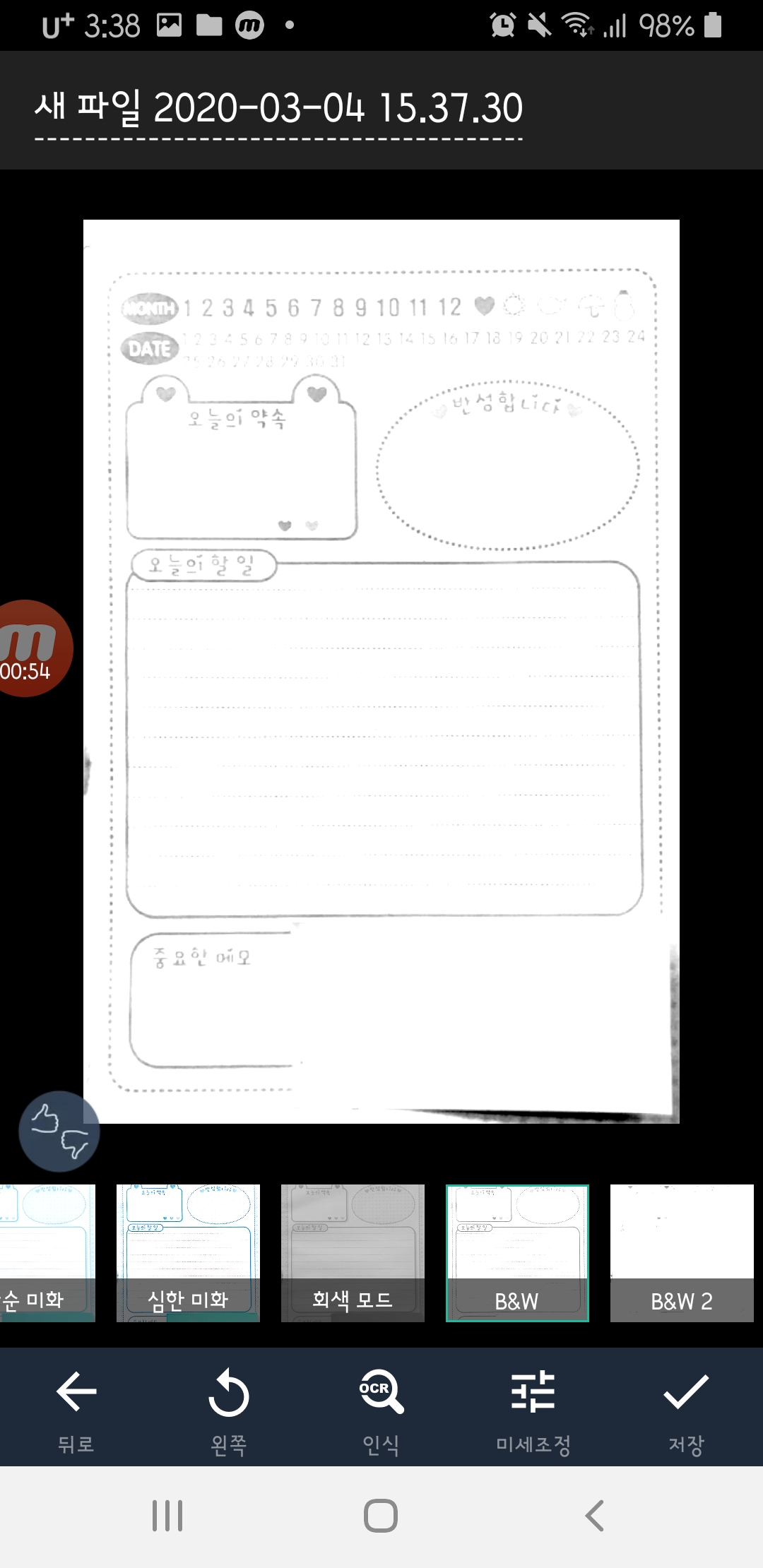 가장좋았던 점은 비스듬한 각도에서도 자동 기울기보정이 되므로 왠만한서류를 만들수 있어요